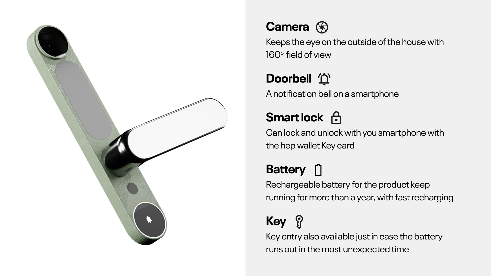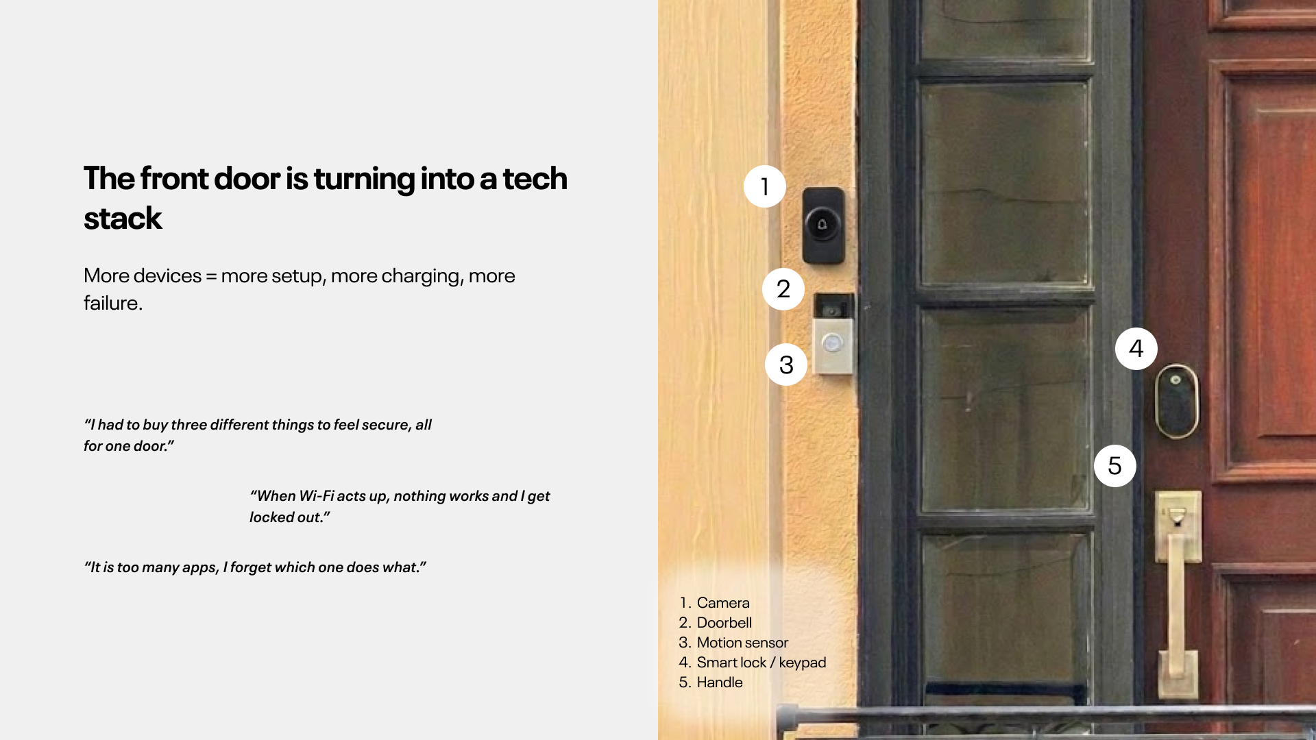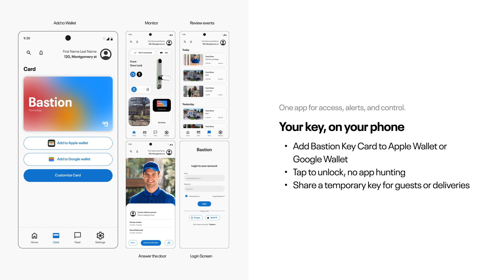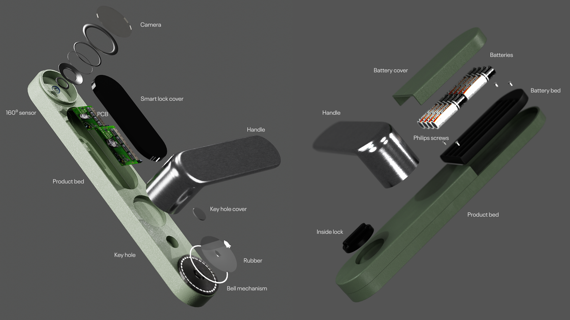 Bastion is an integrated door hardware concept designed to replace multiple home security devices with one cohesive form. I focused on product architecture, ergonomic placement, standard-fit sizing, installation practicality, and CMF, supported by detailed component planning and a clear interaction system.