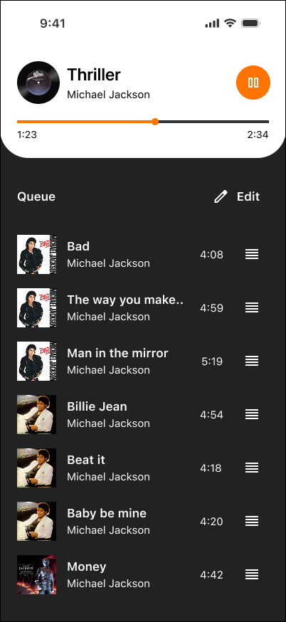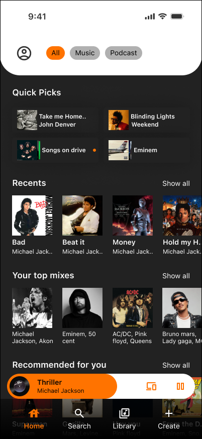 A premium music app built for fast listening, clean control, and zero clutter. Resume instantly, manage your queue in seconds, and switch to lyrics without losing your place. Modern UI, clear hierarchy, and small micro-animations that make playback feel alive.