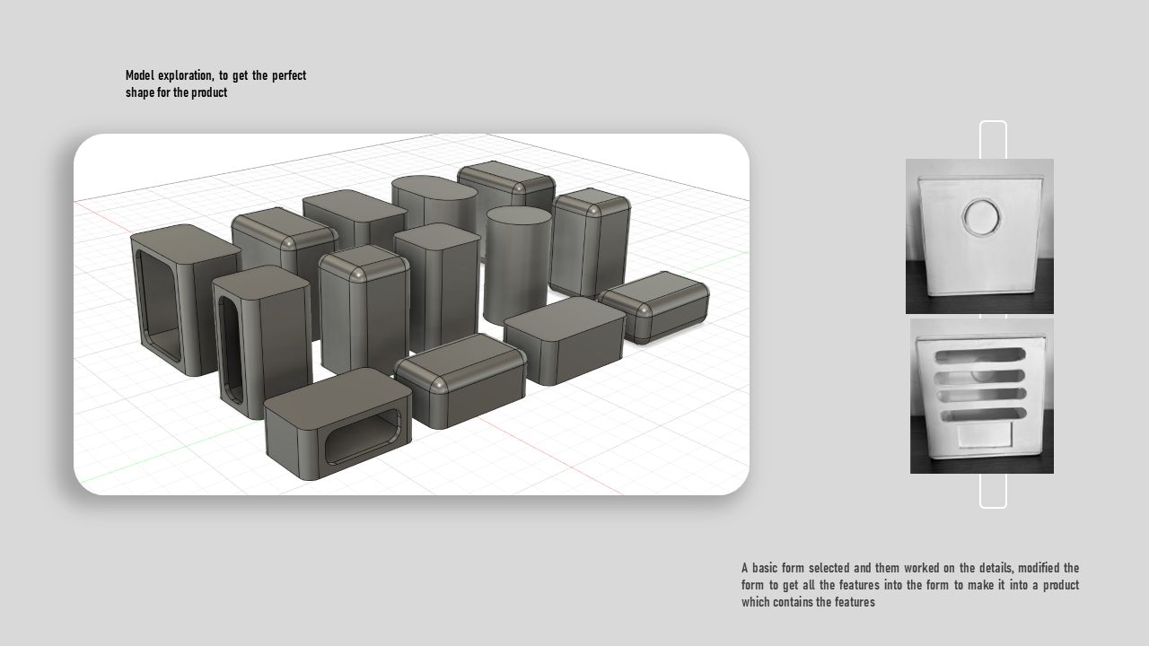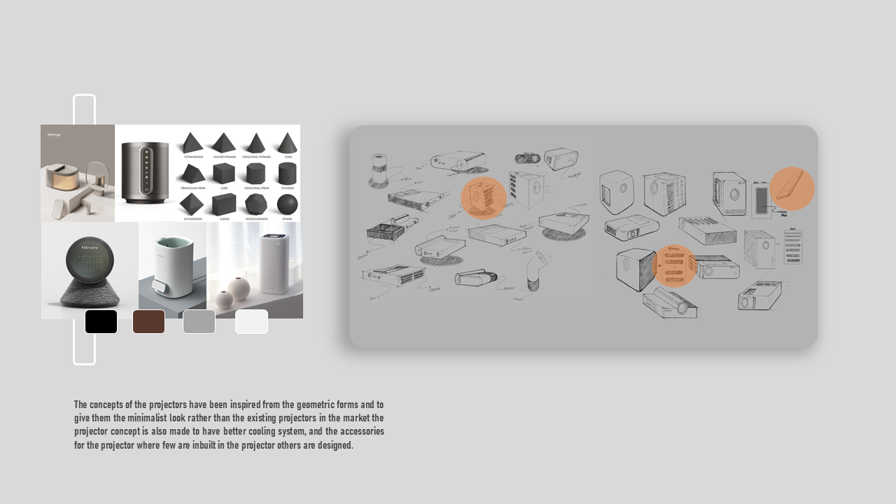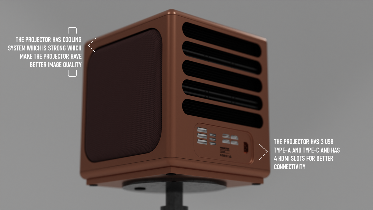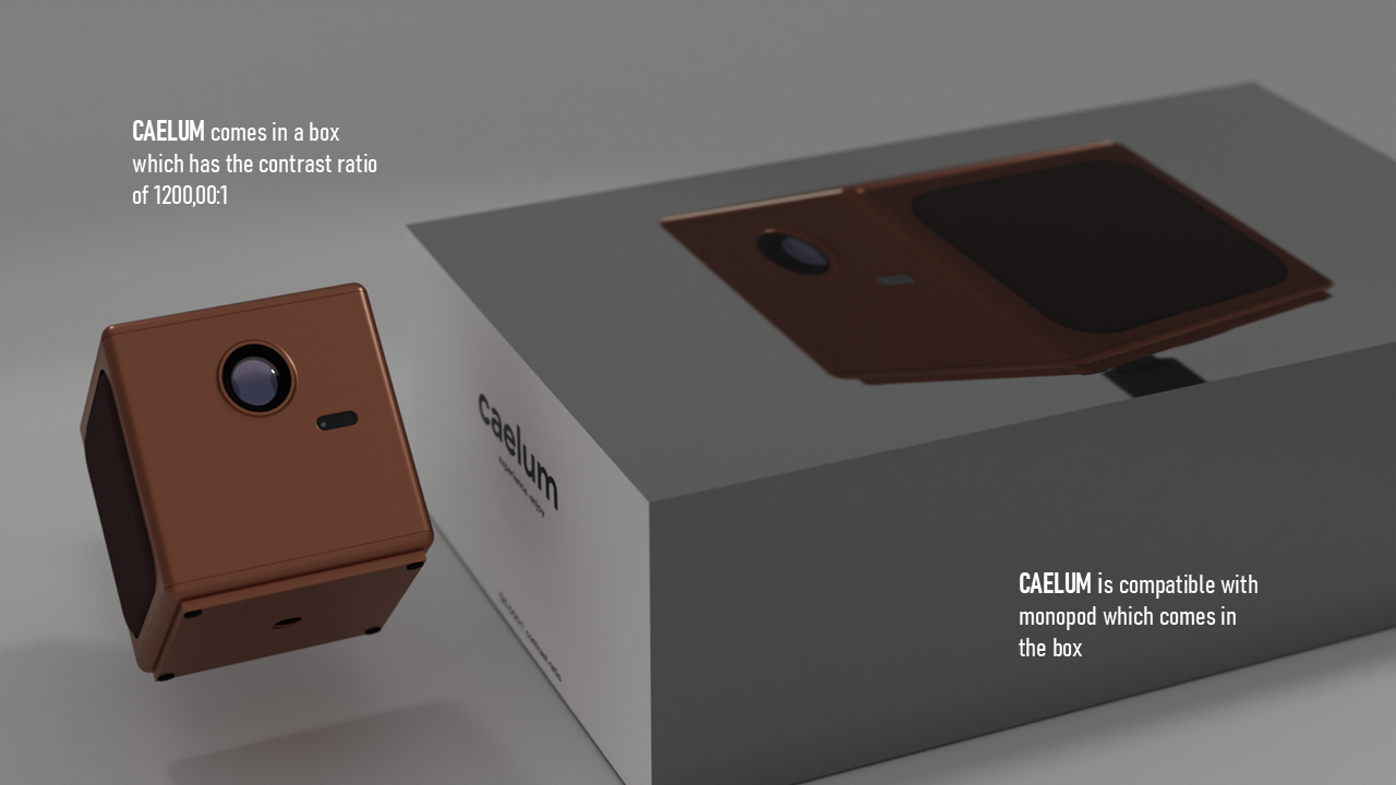 CAELUM is a portable projector concept designed for people who move between rooms and locations and still want an easy, high-quality viewing setup. I studied where projectors are used, what limits portability, and what users actually care about when setting up quickly. I explored multiple form directions, built quick mockups to test proportions, then developed a final design with a clean geometric body, stable mounting support, clear ventilation logic, and a refined CMF range. Deliverables include research framing, concept sketches, CAD form exploration, final renders, CMF options, orthographic views, and packaging.