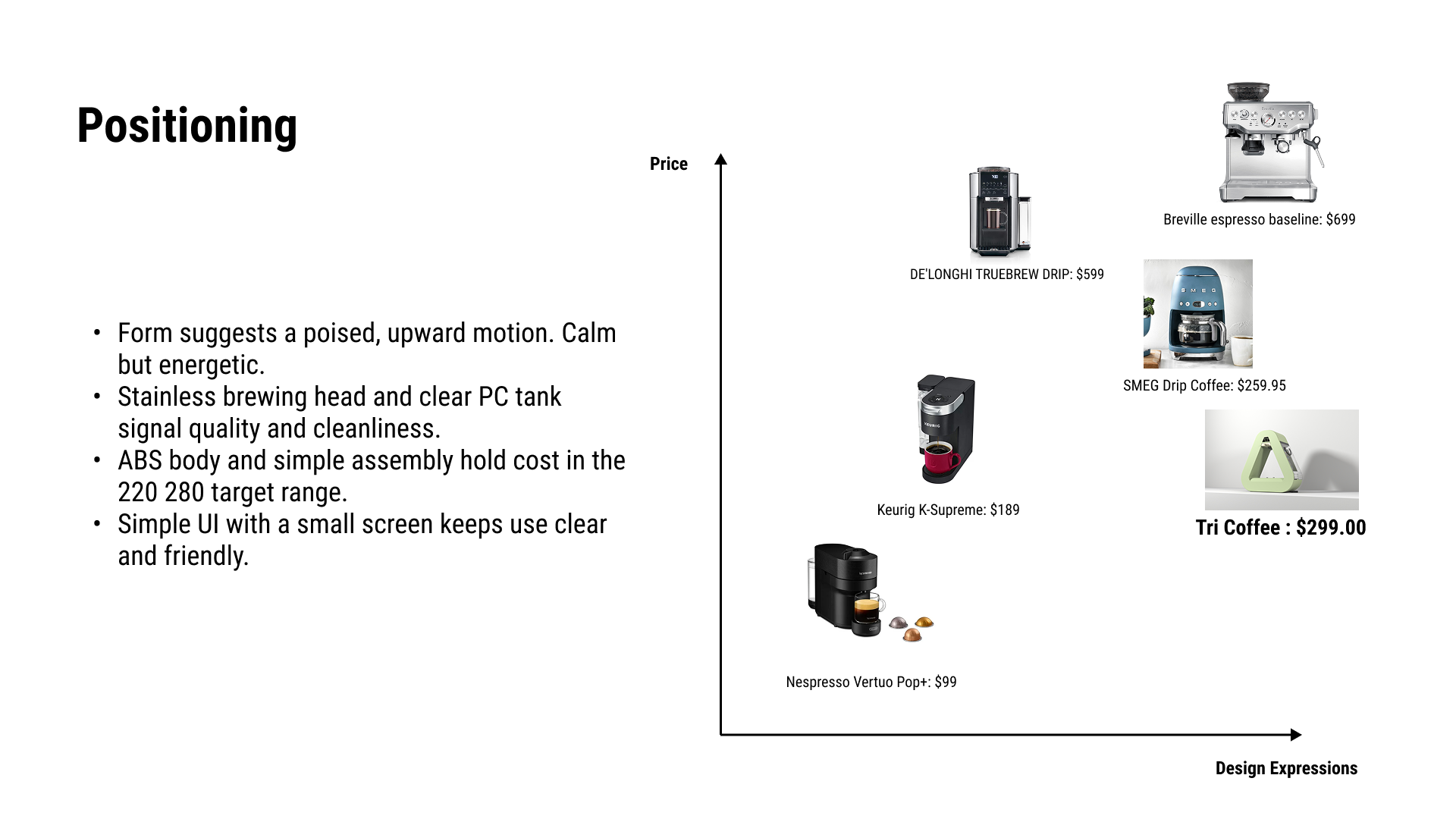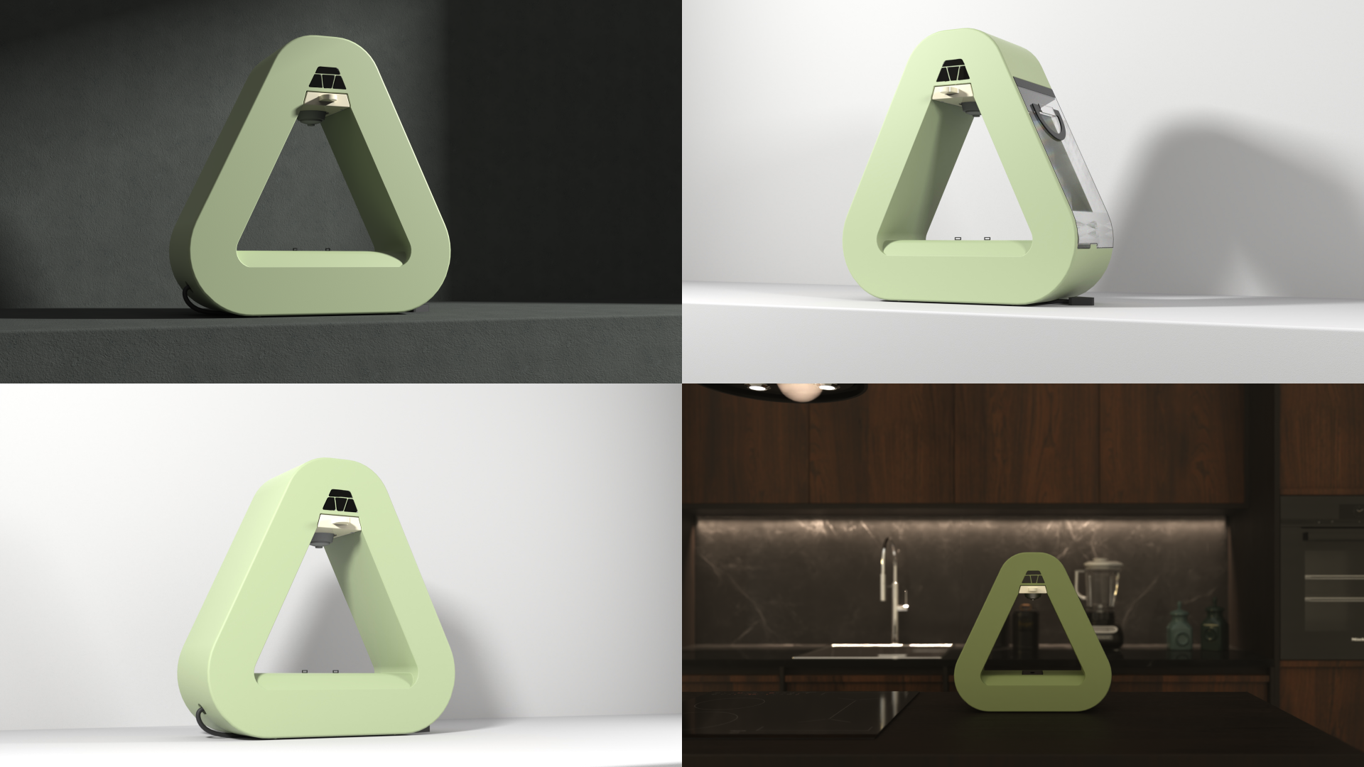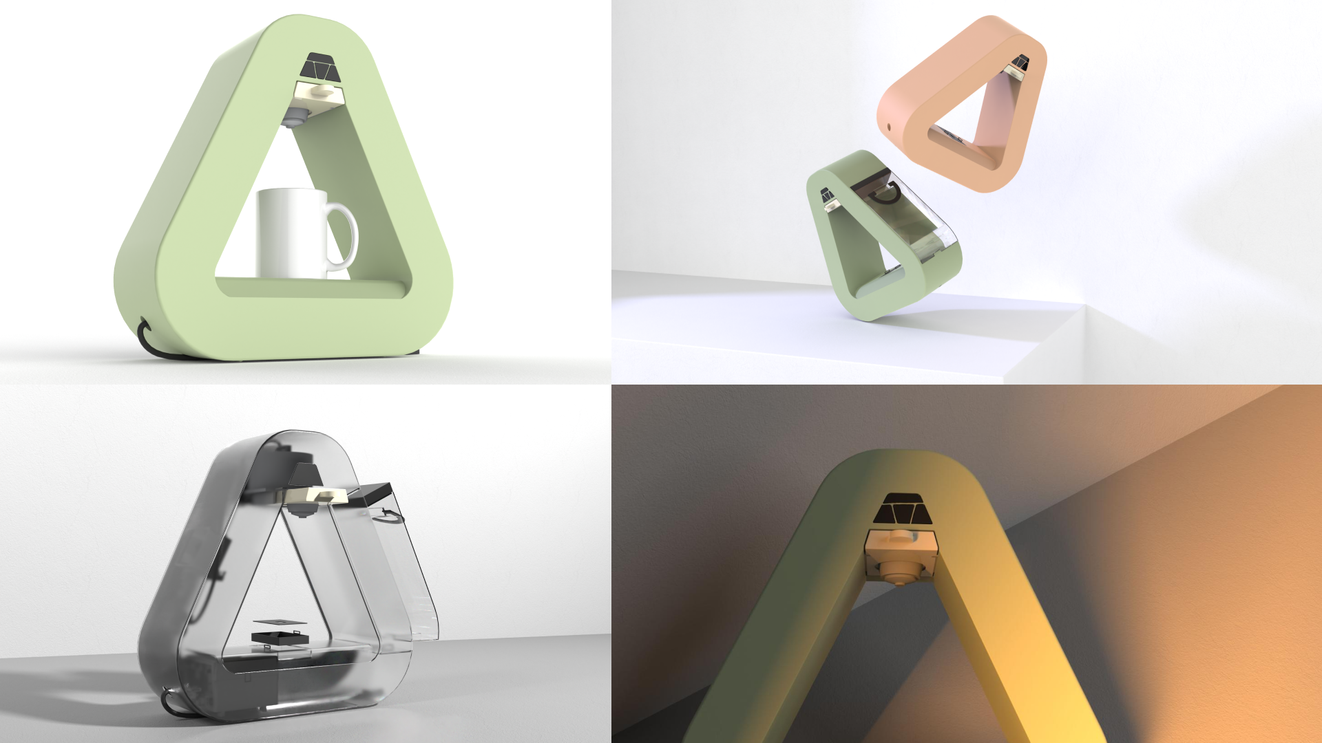 ARC is a form-led coffee machine concept that turns a daily appliance into an interior object. The triangular loop creates a stable footprint, an iconic profile, and a clear brew zone, while the modular side access supports maintenance and cleaning. The CMF direction was kept warm and muted to match BOBO interiors.